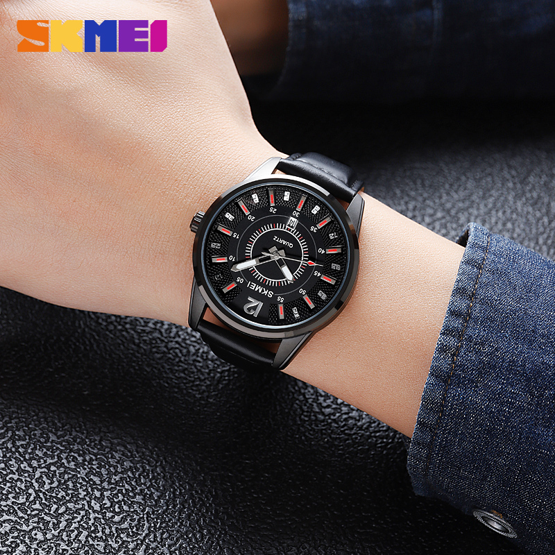 SKMEI 1993 Gents Quartz Genuine Leather Strap Casual Wrist Watch