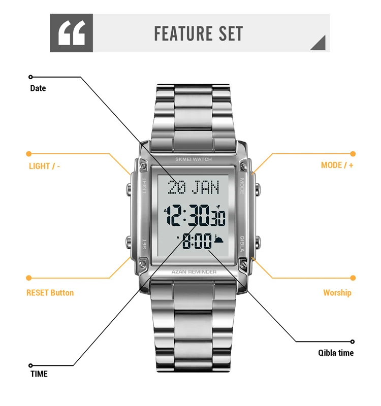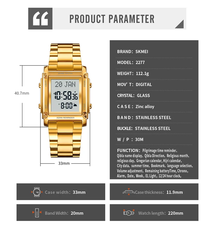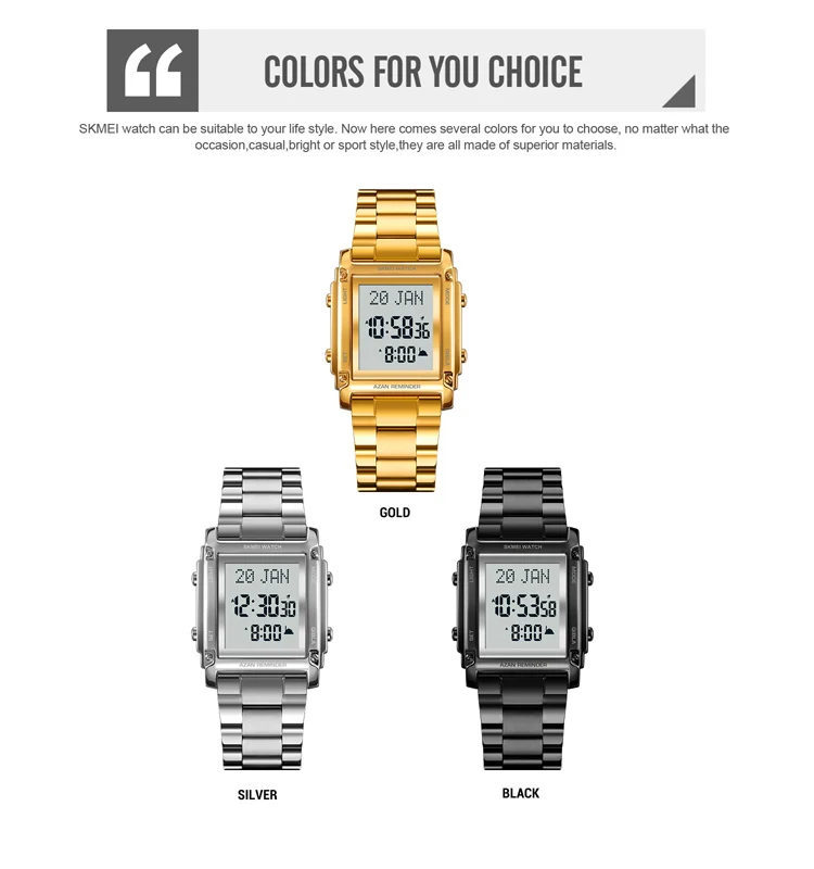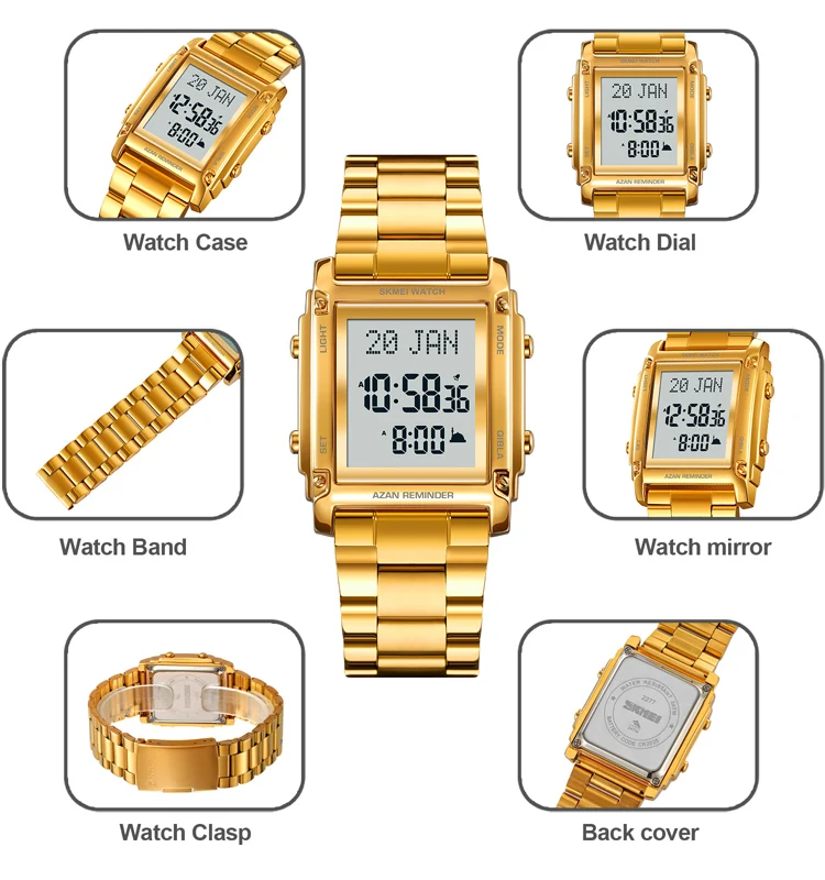 SKMEI 2277 Digital Azan Watch Qibla Direction Prayer Muslim Products Men Islamic Watch