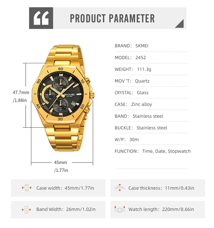 SKMEI 2452 Fashion Sports Stainless Steel Waterproof Men’s Quartz Watch