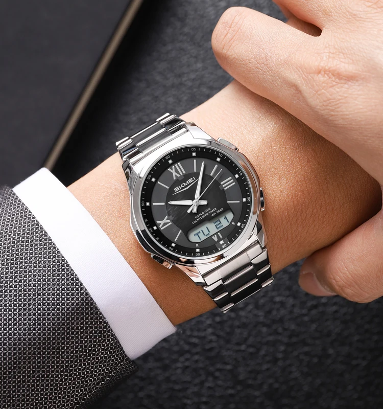 SKMEI 1868 Fashion Design Luxury Stainless Analog Digital Wrist Watch
