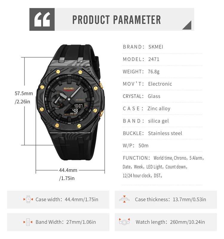 Skmei 2471 Sports Digital Dual Movement Waterproof 50 Meter Fashion Wristwatch