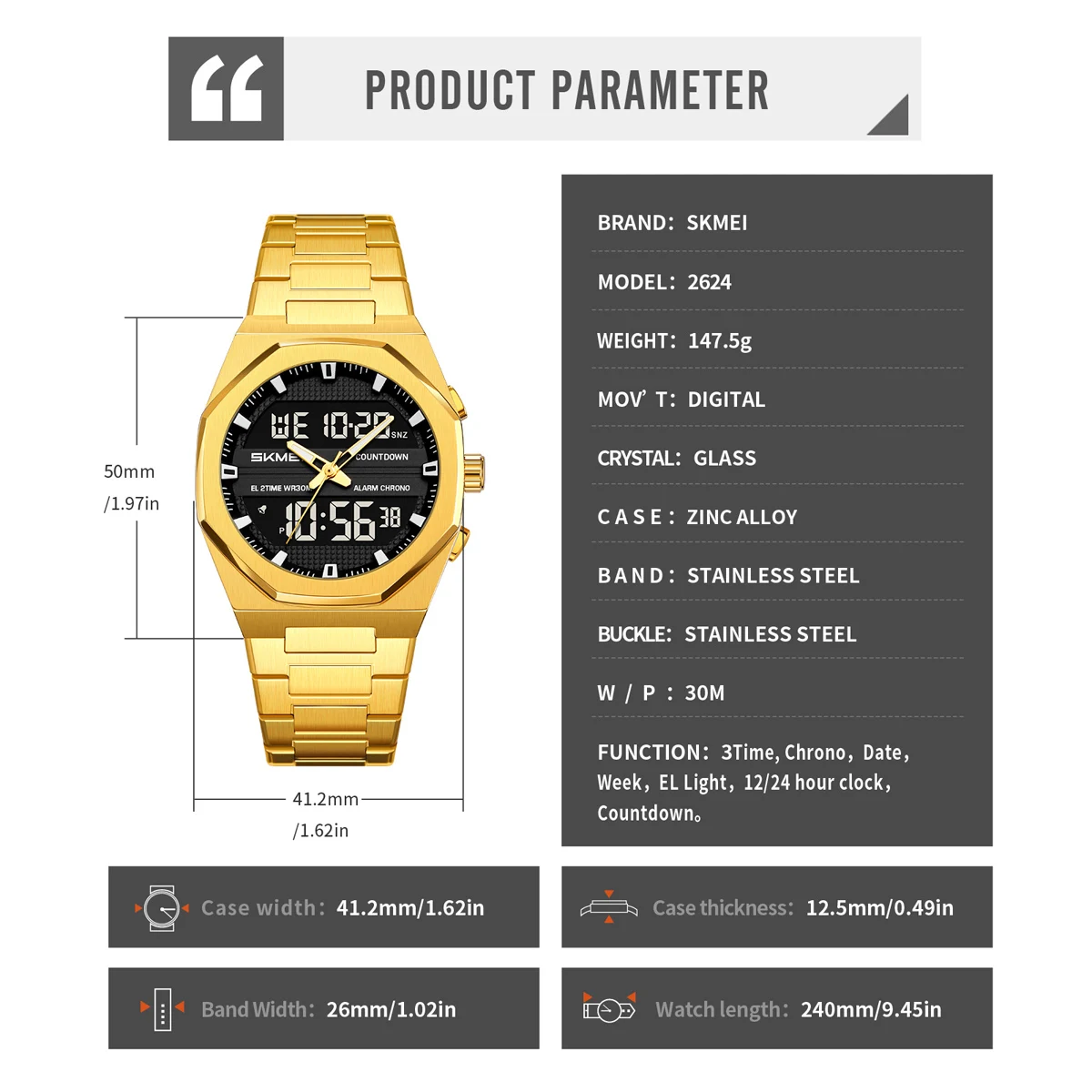 SKMEI 1868 Fashion Design Luxury Stainless Analog Digital Wrist Watch