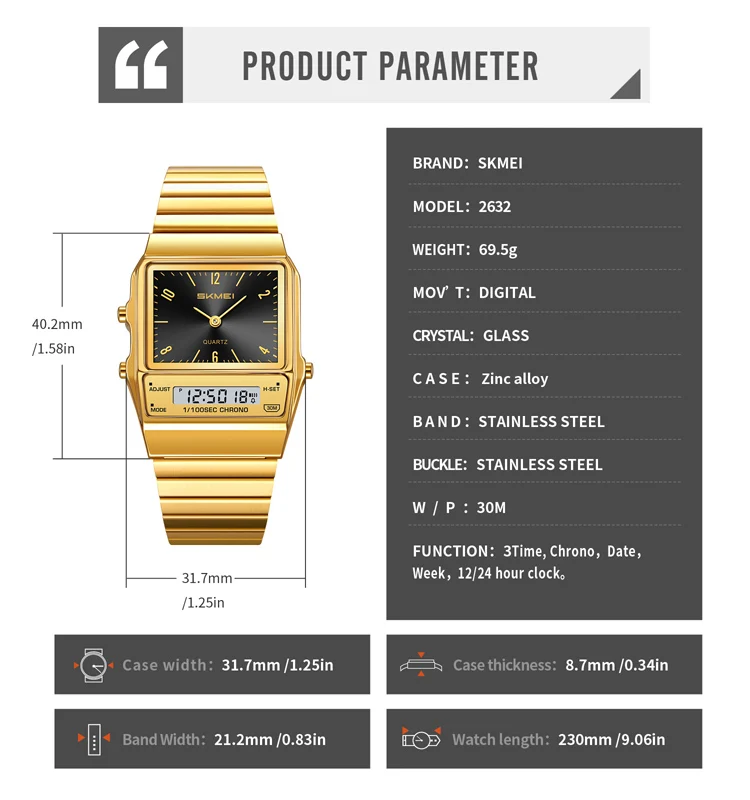 Be the first to review “SKMEI 2632 Alloy case Stainless Steel Strap Double Display Digital Electronic Wristwatch ” Cancel reply