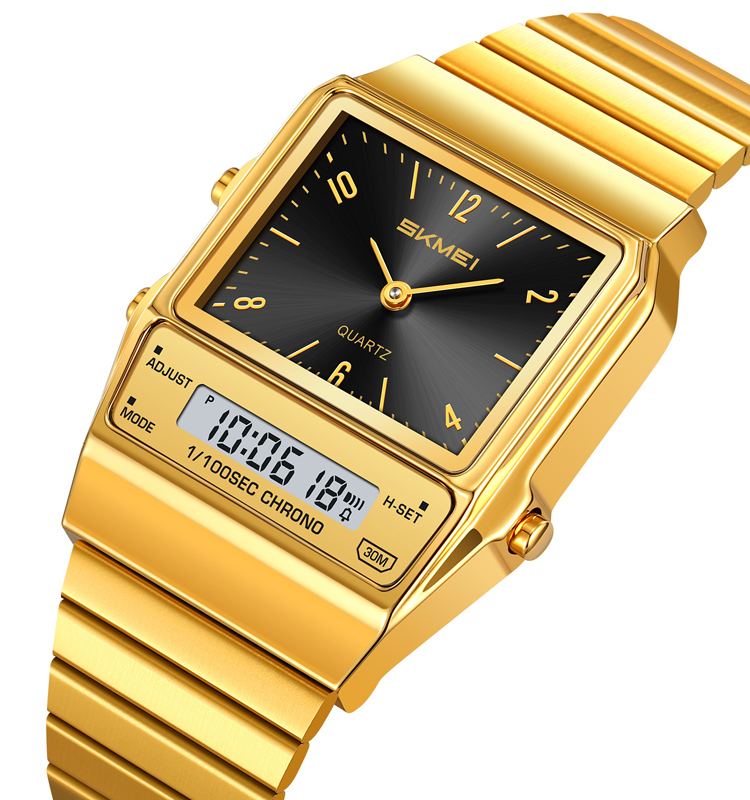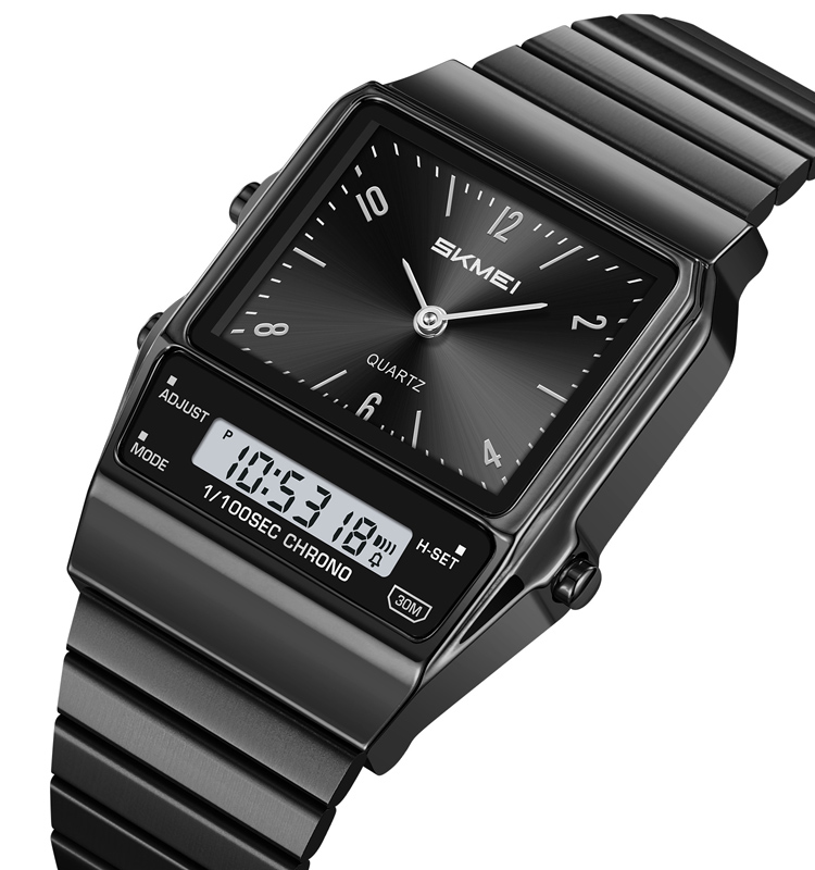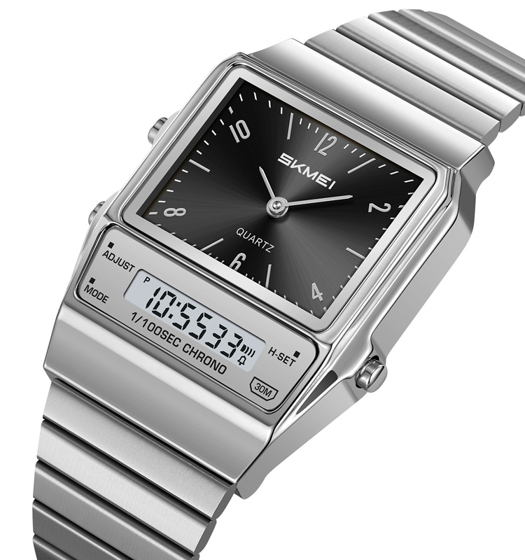 SKMEI 2632 Alloy case Stainless Steel Strap Double Display Digital Electronic Wristwatch