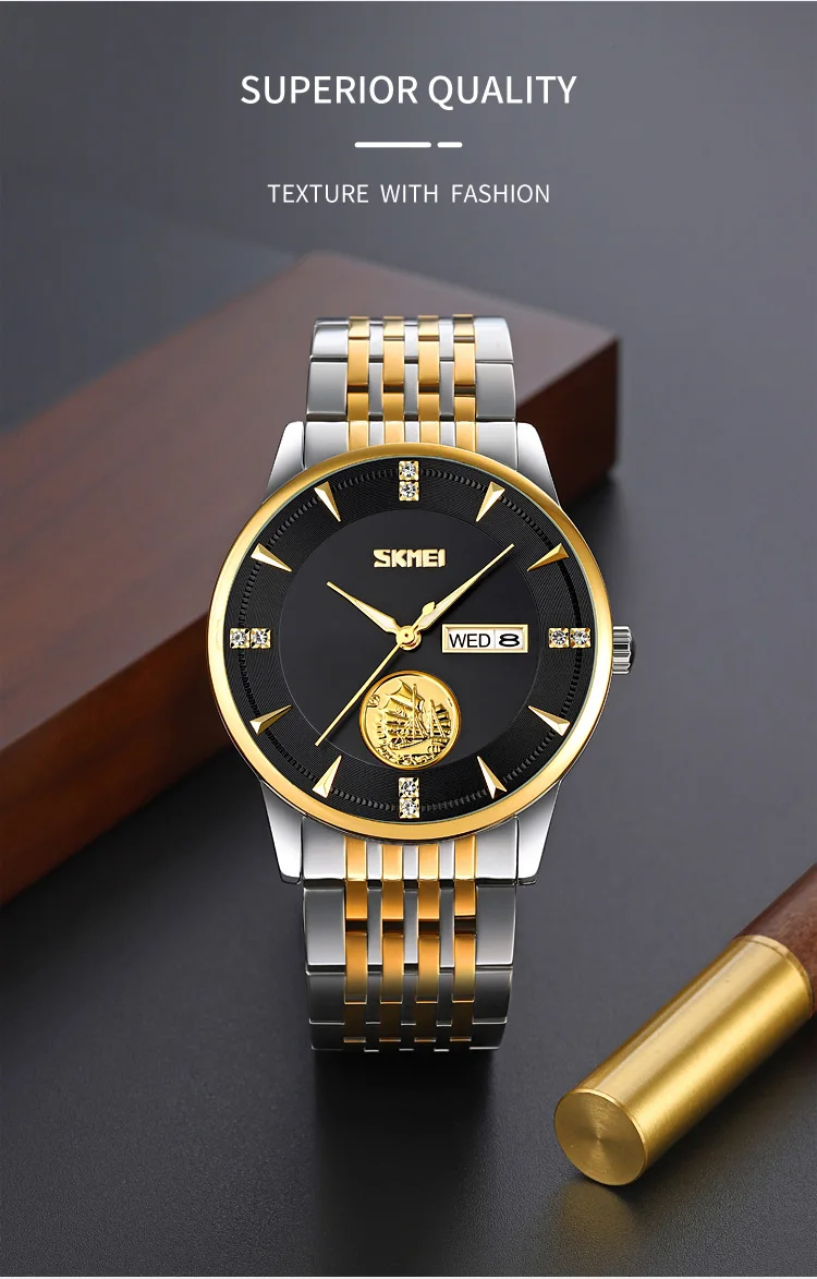 SKMEI 9309 Relojes Hombre Mens Watches Luxury Auto Date Stainless Steel Strap 3 ATM