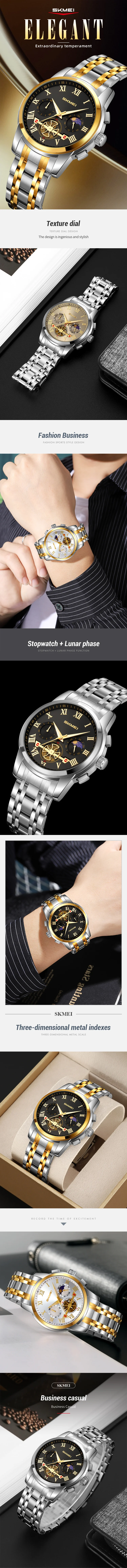 SKMEI 9394 Business Analog Quartz Luminous Moon Phane Luxury Chronograph Wristwatch