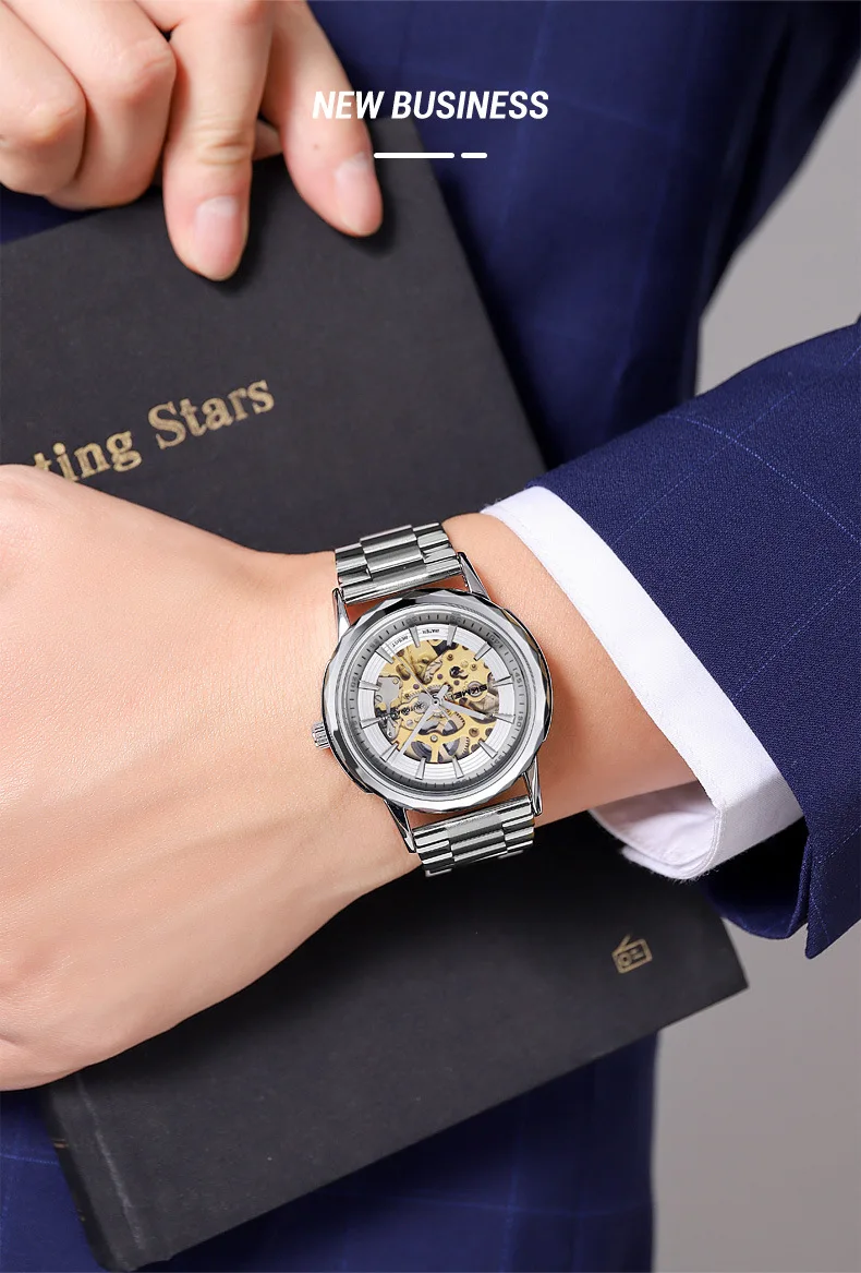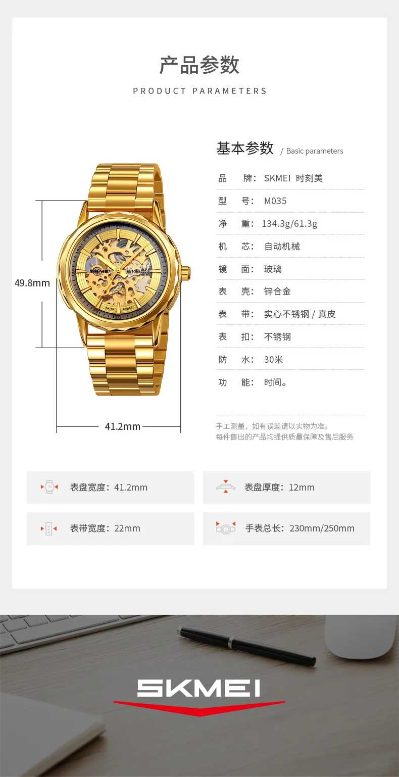 SKMEI M035 Automatic Mechanical Movement Water Proof Hollow Out Casual Watch Design